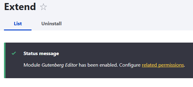 Navigate to the modules section of your website and enable the module. You can now set permissions for Gutenberg based on user roles.
