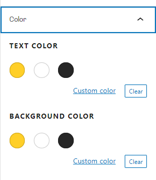 In the gutenberg.yml file we just created you can define the theme-support item to add additional color and font size options. Below is an example that adds additional color options and font sizes: