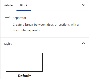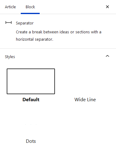 })(jQuery, Drupal, window);As an example, let's look at the "separator" block provided by Gutenberg. By default, there are 3 styles of separator: Default, Wide Line, and Dots