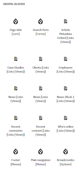 You should now see a list of Drupal blocks available in the Gutenberg block browser: